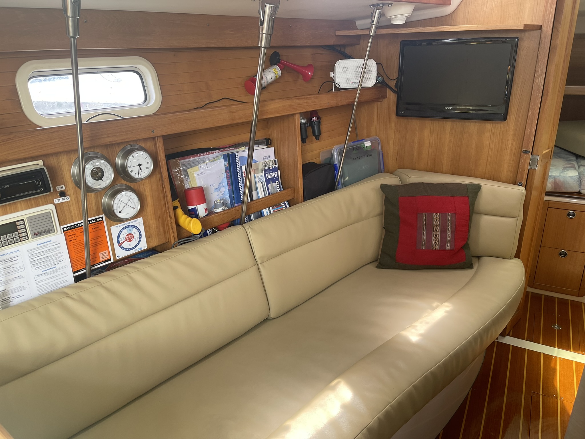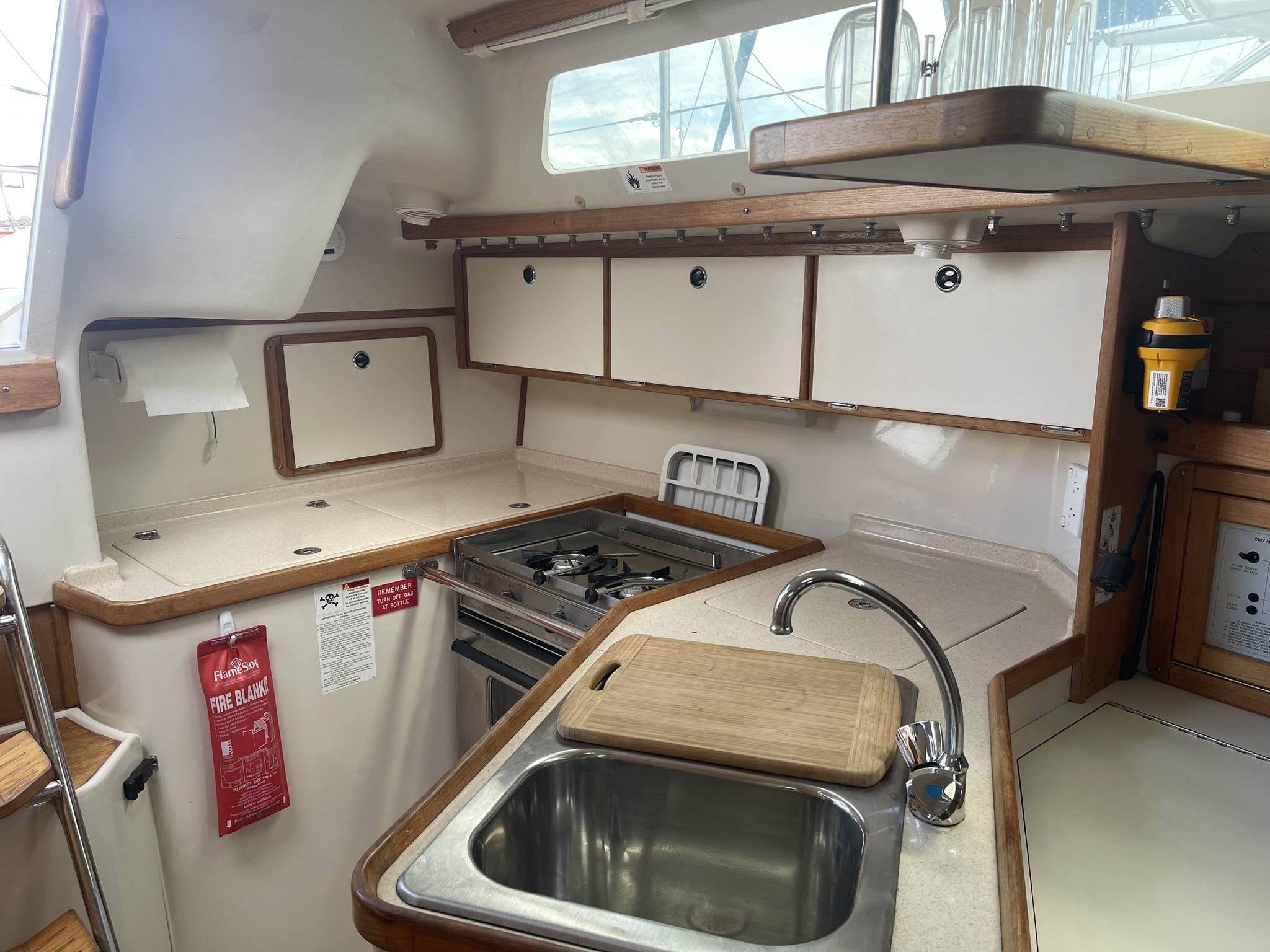 The Catalina 320 is just a brilliant design, which has proved to be timeless, and has to be the roomiest boat of its size. A wide and modern transom also gives easy access to the sea, . This wider style of transom also gives this boat a steady downwind motion. Liberty is a great example of the 320. She is very clean and well maintained. The boat is easily handled. With replaced rigging and updated electric systems, there is nothing to attend too and we would encourage your interest.