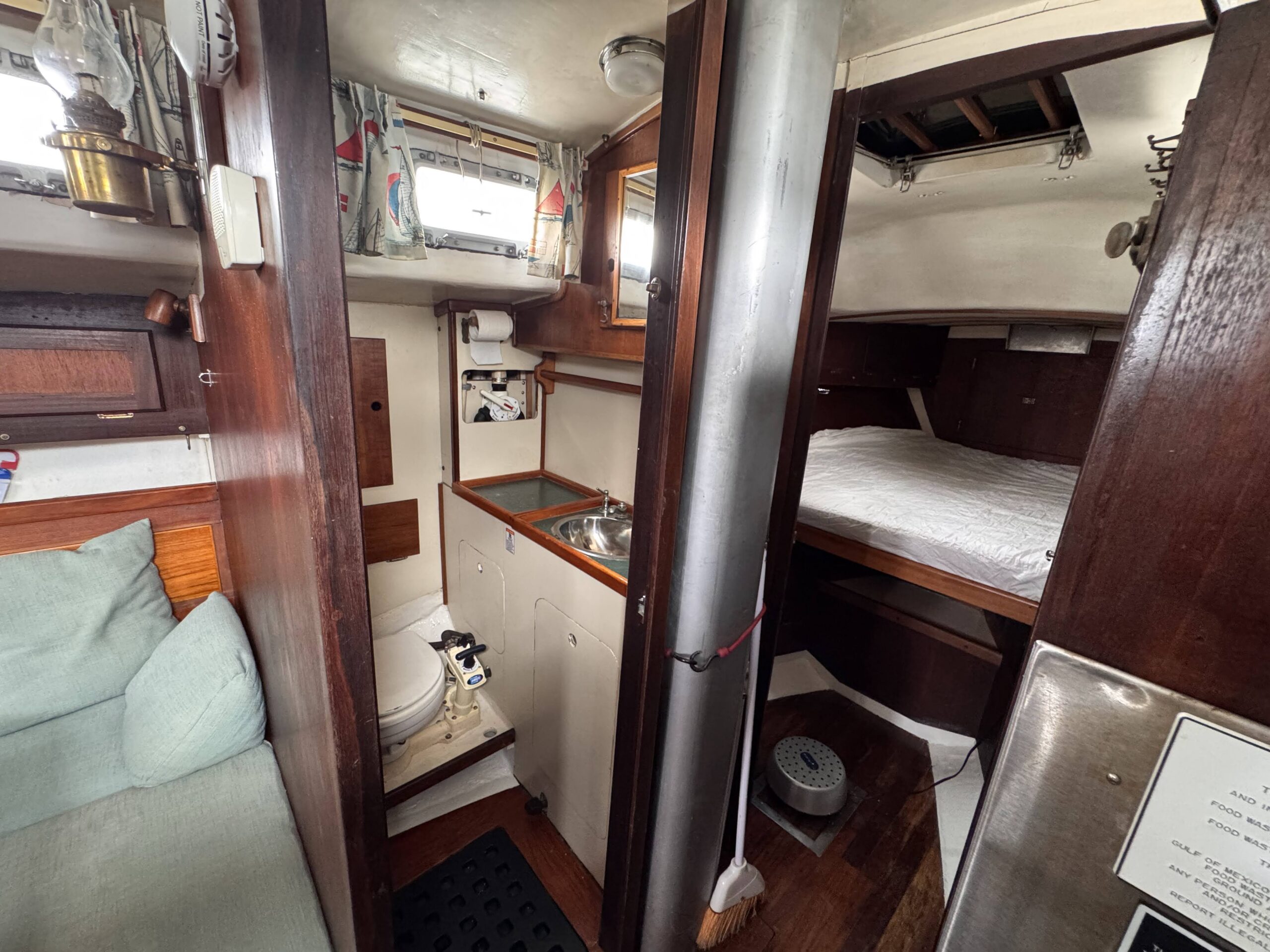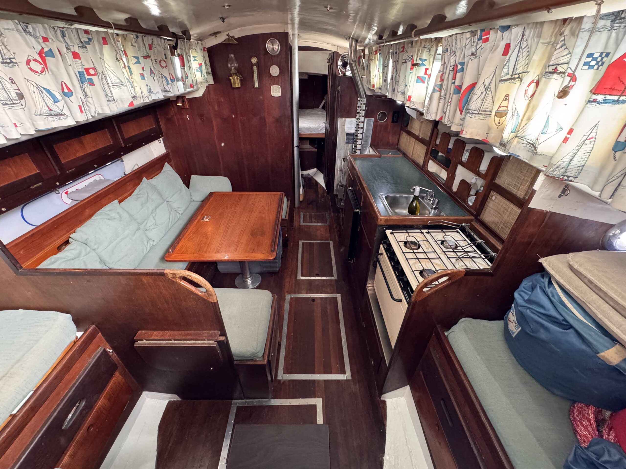 There are 3 functional sea berths (the quarter berths and the saloon settee) with lee cloths and wedge cushions for comfortable sleep underway.