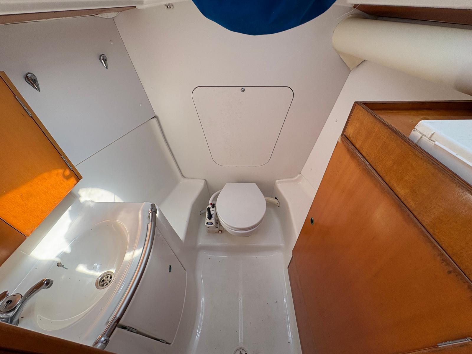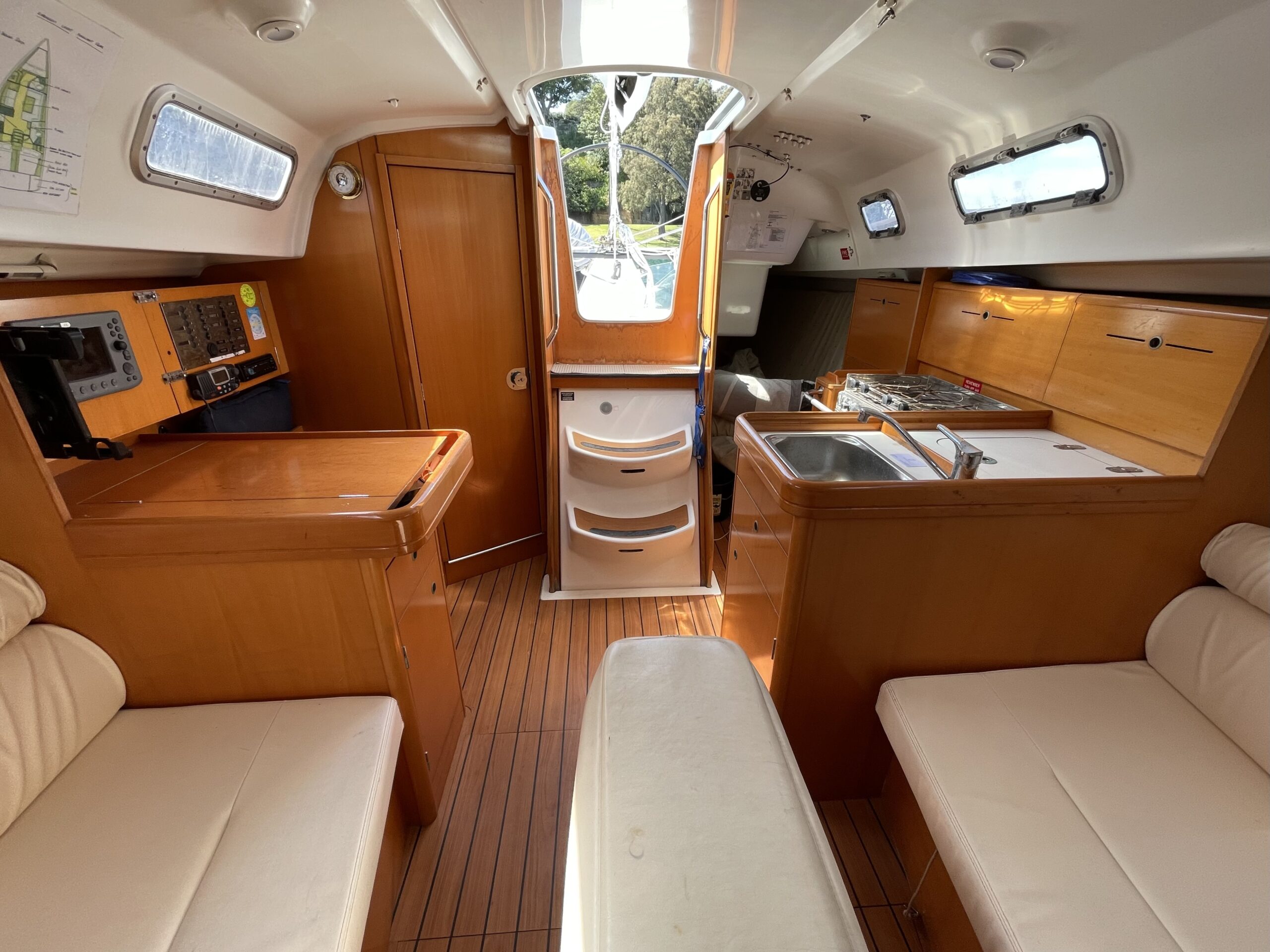 - 2 x cabins with Pearwood interior, galley to port, navigation station to starboard and head in bow.
