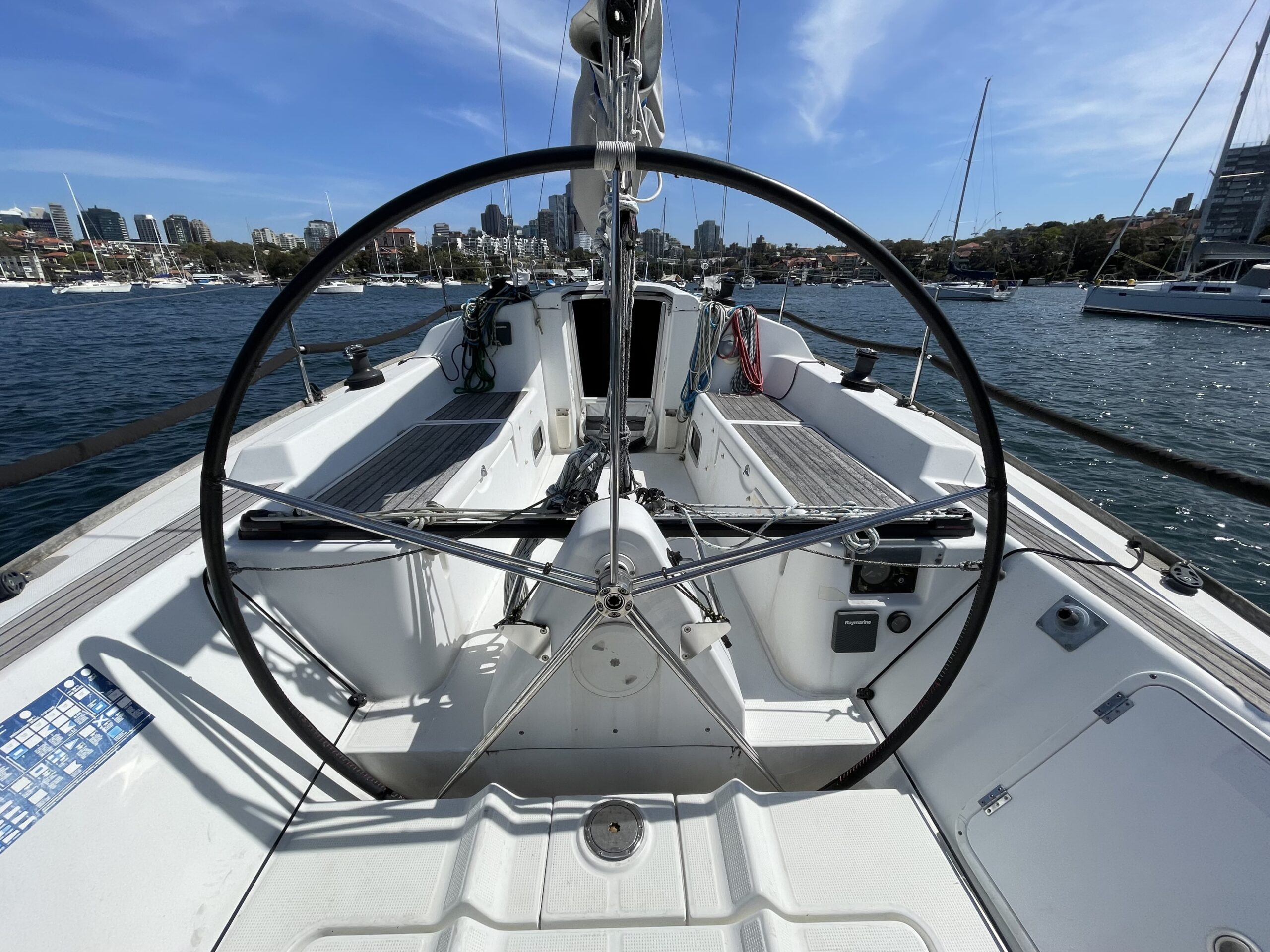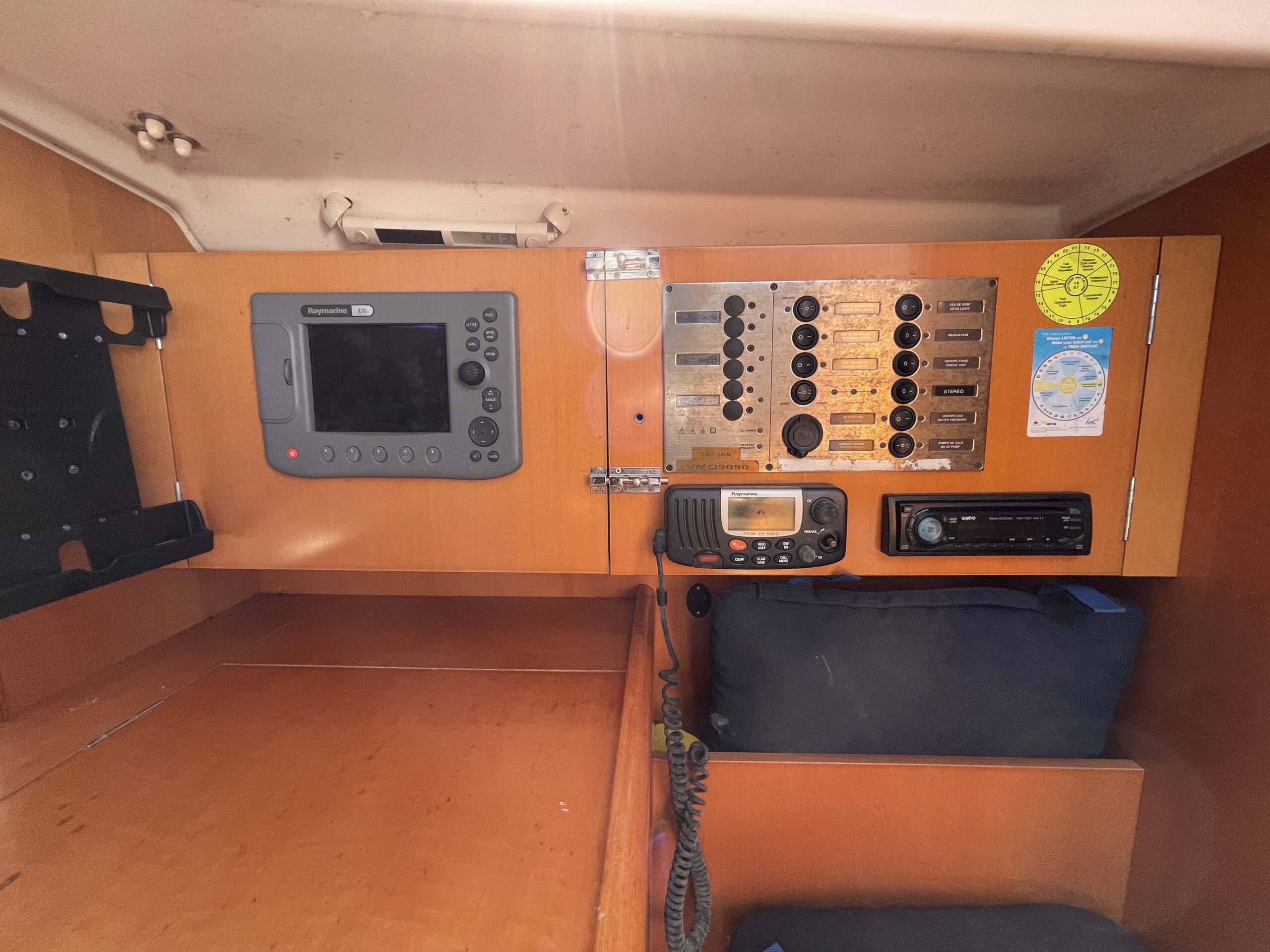 - Raymarine 370 charts, Raymarine 54E VHF radio, Raymarine wind instruments, Raymarine autopilot.