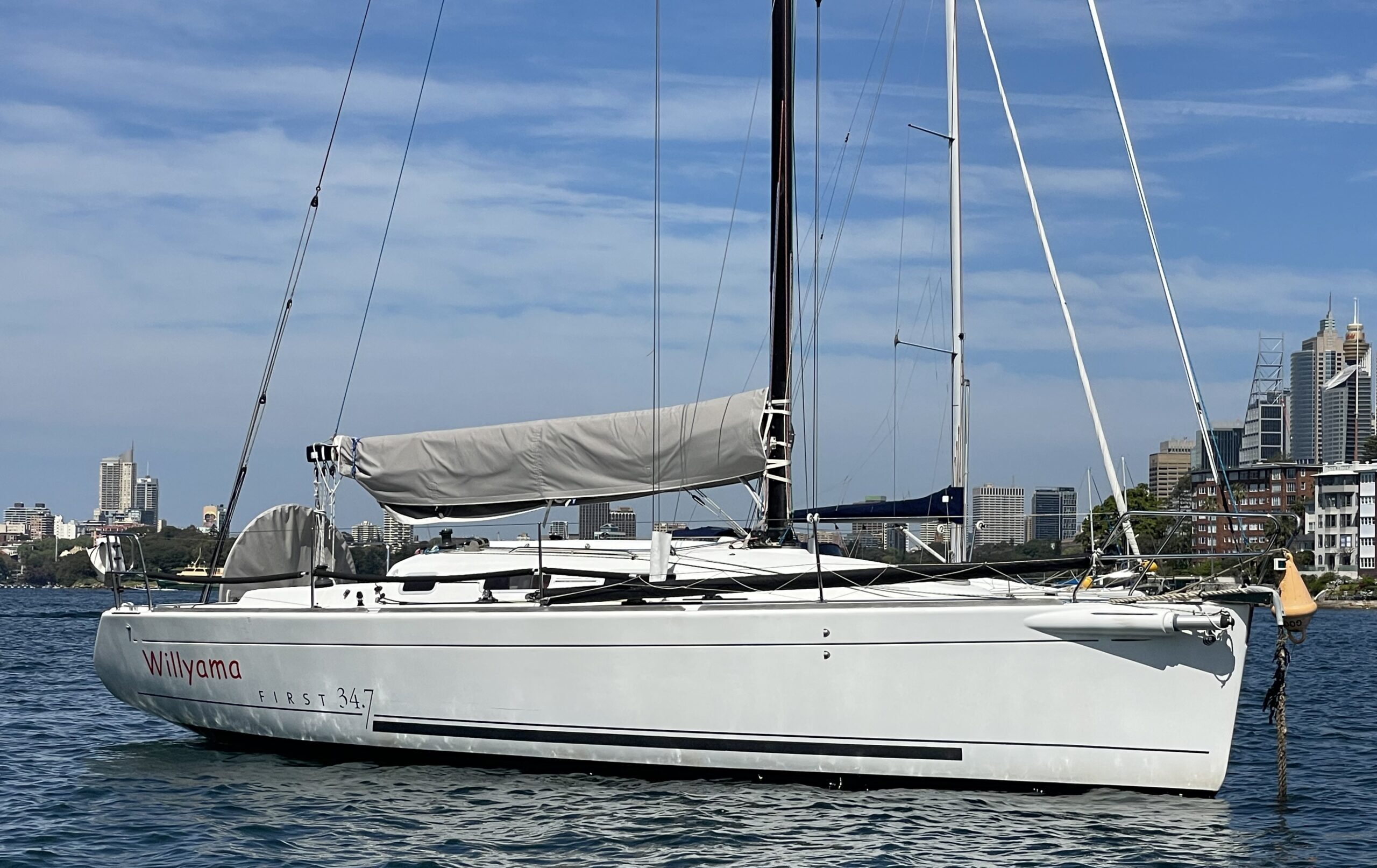 The Beneteau 34.7 Willyama is a yacht designed by Bruce Farr as a graceful and powerful cruiser–racer. This model was produced by Beneteau between 2005 and 2009 with 125 hulls completed. Conceived to perform with a fractional sloop rig, T-shaped keel with bulb and spade rudder, she offers excellent upwind ability. Her accommodation is thoughtfully arranged for both crew racing and coastal cruising. The 34.7 offers a racer’s heart but with the amenities and durability to enjoy time aboard in comfort. In 2018 she underwent a major overhaul where her rudder was upgraded to a deeper Farr-designed Carbon rudder with stern fairing, the rudder bearing was replaced, instrument wiring replaced, and Vang support also new. She has an excellent sail wardrobe a clean hull and ultimately she is awaiting new owners and adventures.