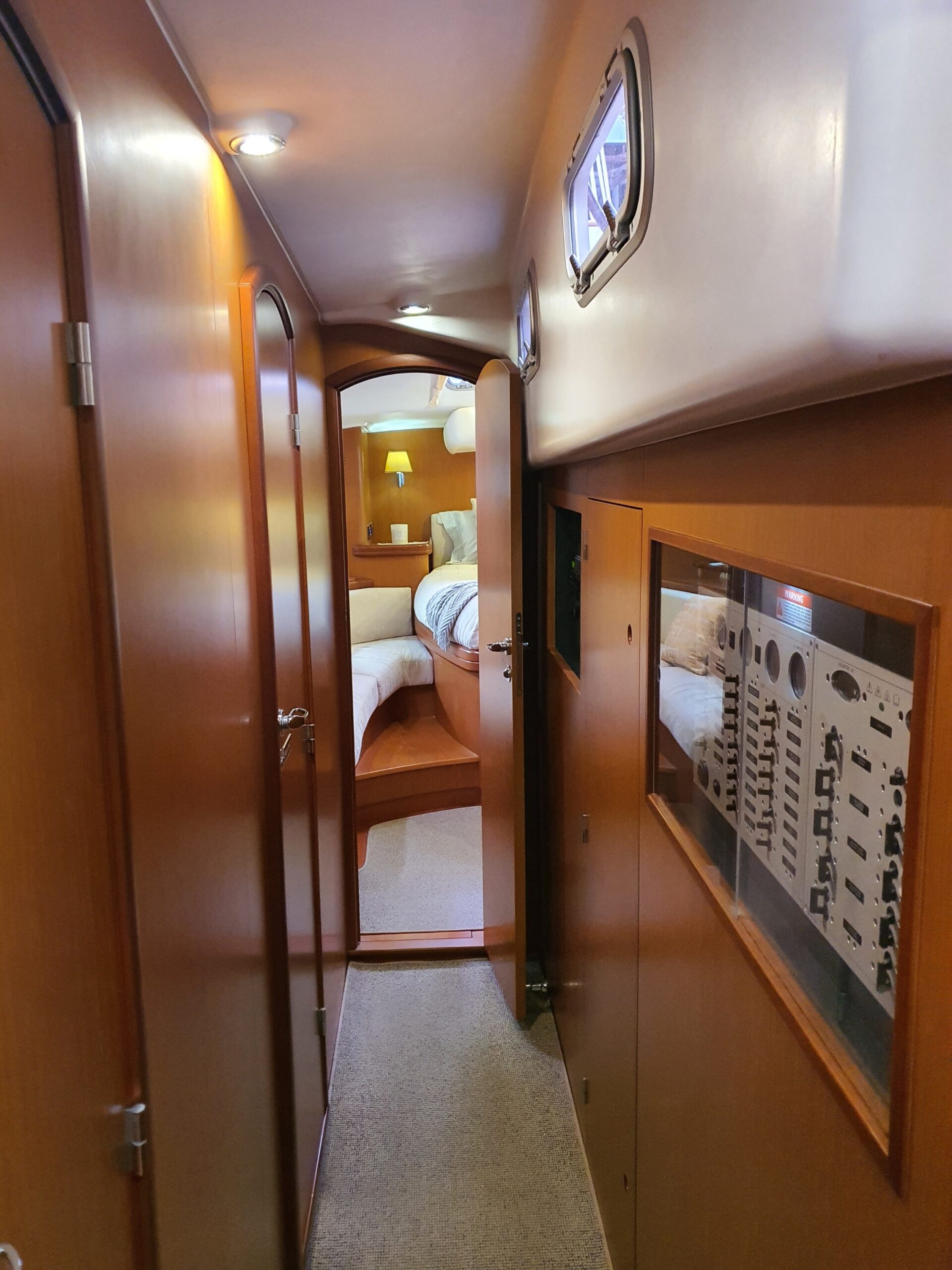 - Individually air-conditioned cabins, Owners layout. Owners and 2 guest staterooms all with private ensuites. Crew Quarters/Bunk + Day-Head & shower. Full beam Owners cabin with 6’6 feet clearance, ensuite including shower.