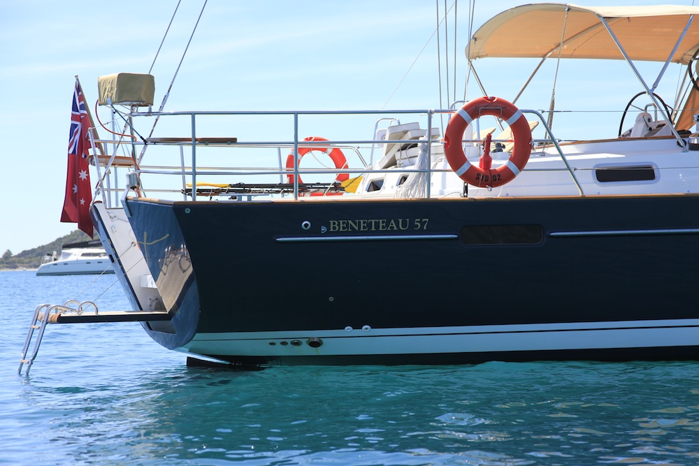 When asked what they love about The Count, the current owners pointed out that apart from the full beam owners cabin, it’s the aft deck made possible by the centre cockpit design. From here access to the water and tender is via a drop down hydraulic swim platform accessed via stairs – not a ladder.