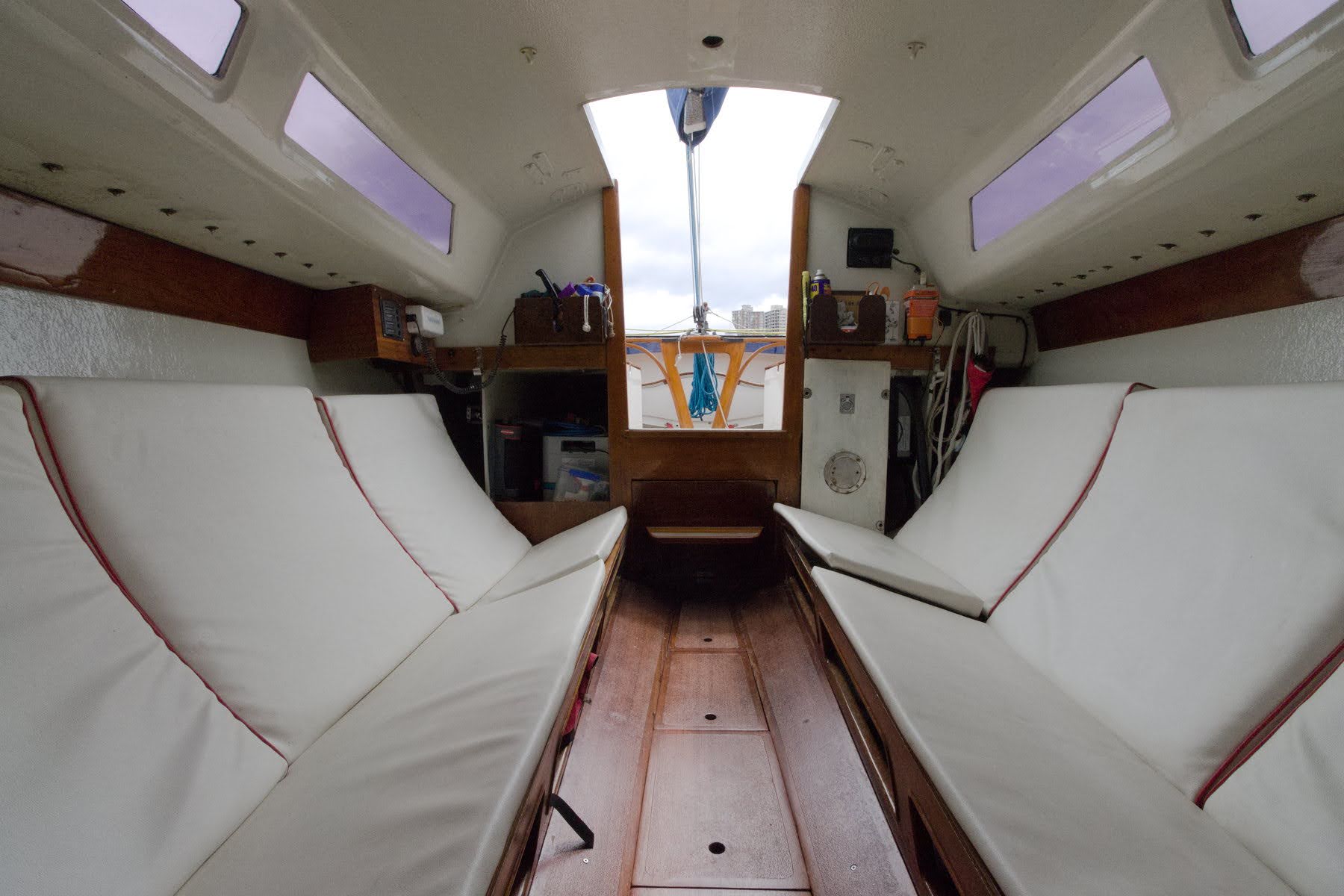 - 1 Large open and spacious interior space with a 4 person sofa seating port and starboard, Double berth forward.