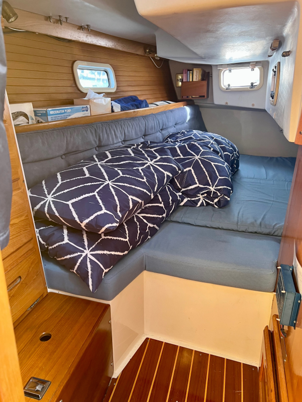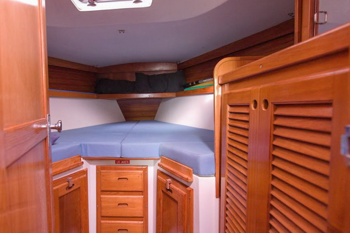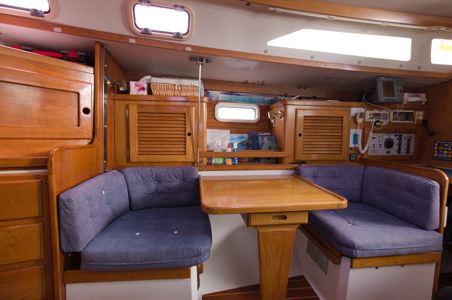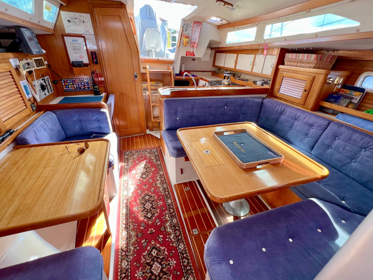 - Main aft 2 person: V-berth forward 2 person. Single side berth for passage making. Dinette table collapses to allow double berth