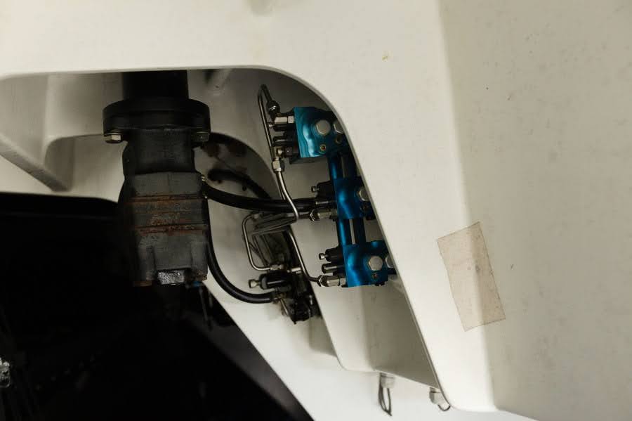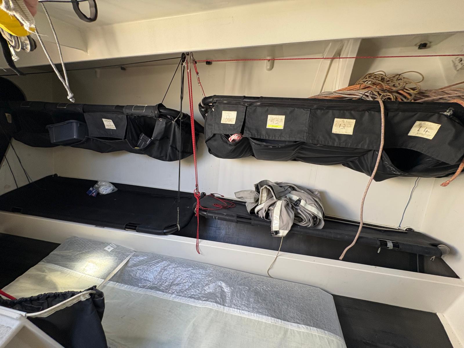 - Carbon fibre bow sprit. 8 x Lewmar Self-tailing hydraulic winches with carbon top plates and line bags for clean storage. Combination of size 50-60 winches. Carbon fibre stauntions, carbon fibre wheels, gas bottle with connection - starboard aft, S/S safety lines with padding, spinnaker pole stored on deck.