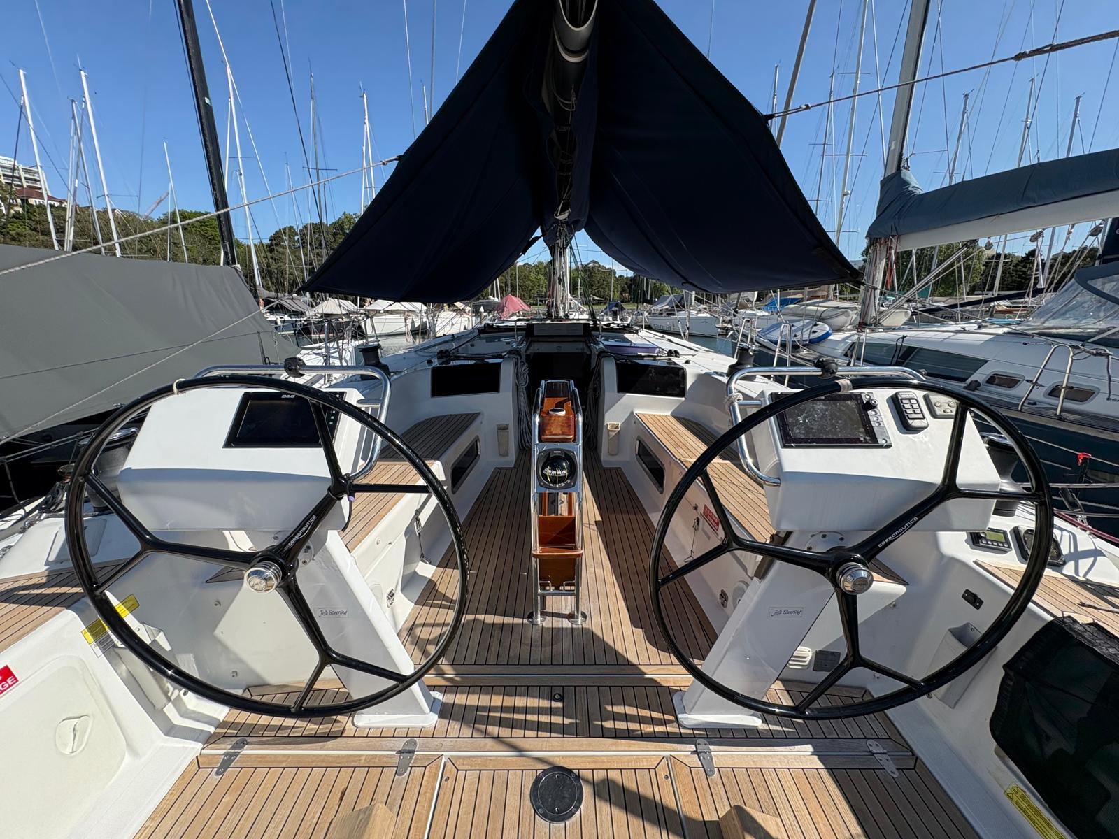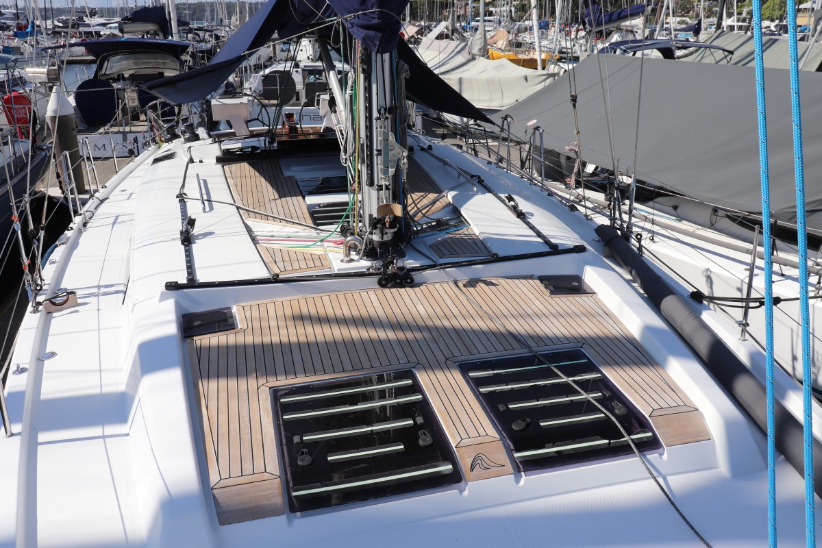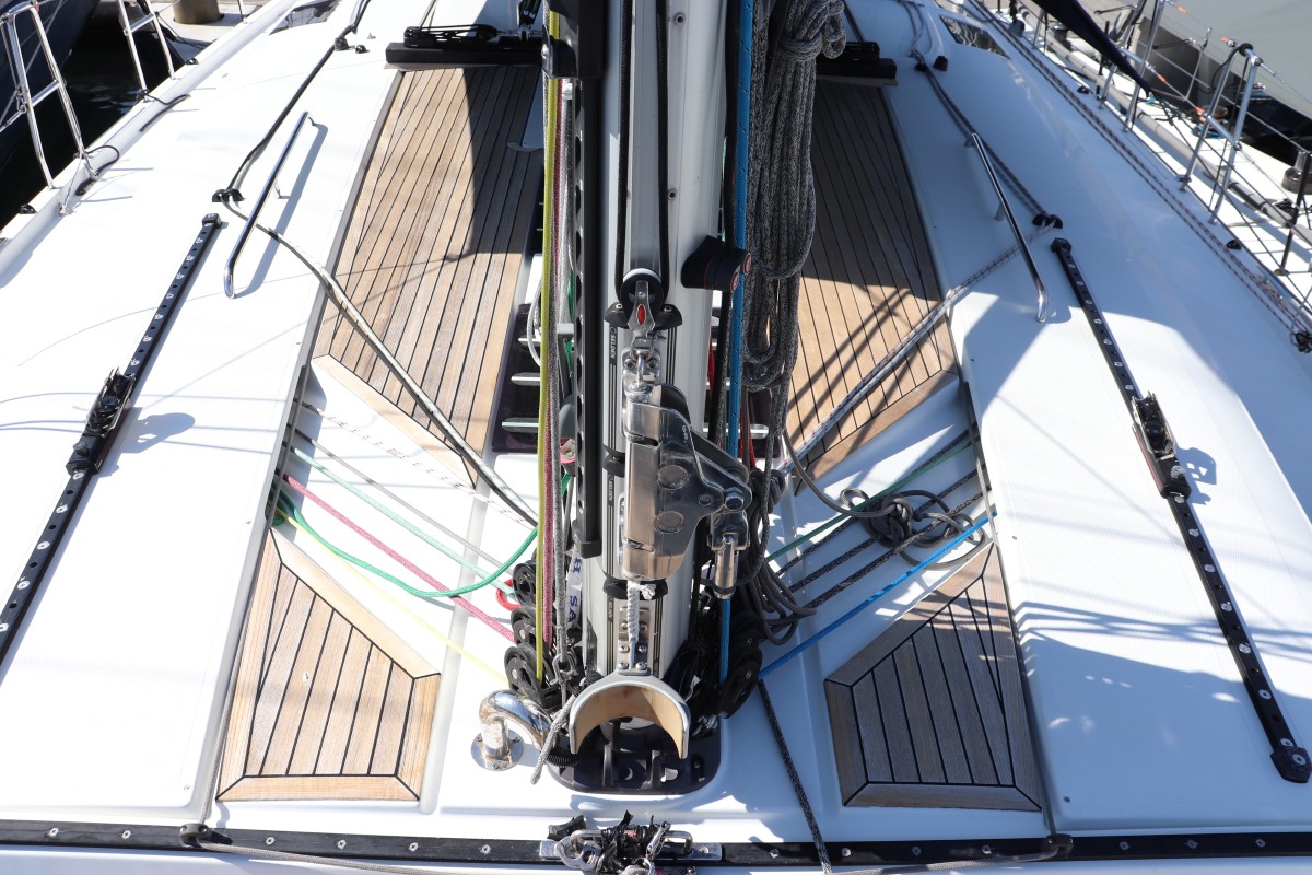 - 2 x New Harken 70 2-speed self-tailing power winches, 2 x Lewmar 55 self-tailing power winches, 2 x Lewmar 55 self-tailing. All Harken cleats, tracks and cars. Carbon spinnaker pole on deck, large foredeck perspex hatches with non-skid strips, S/S stanchions and downlights off spreaders. Twin charging points USB-C at each helm station