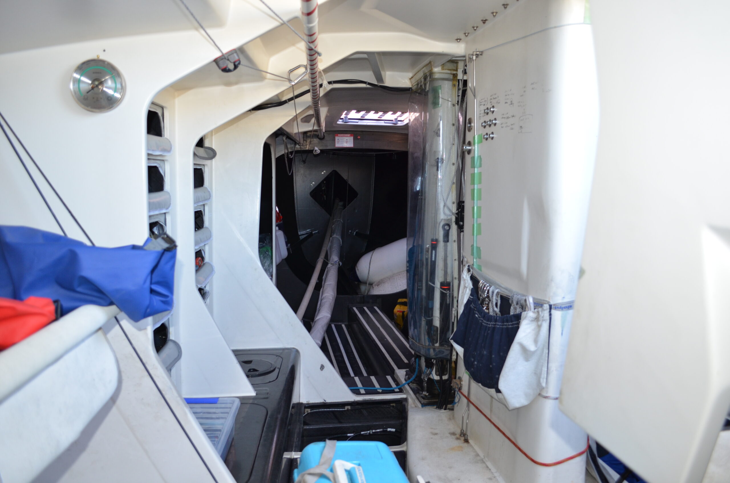 - The interior of the yacht is painted in the midships areas. Bunk front/ tops create storage areas along the length of the interior accommodation space, and 6 x alloy framed pipe costs are mounted on each side to sleep crew.