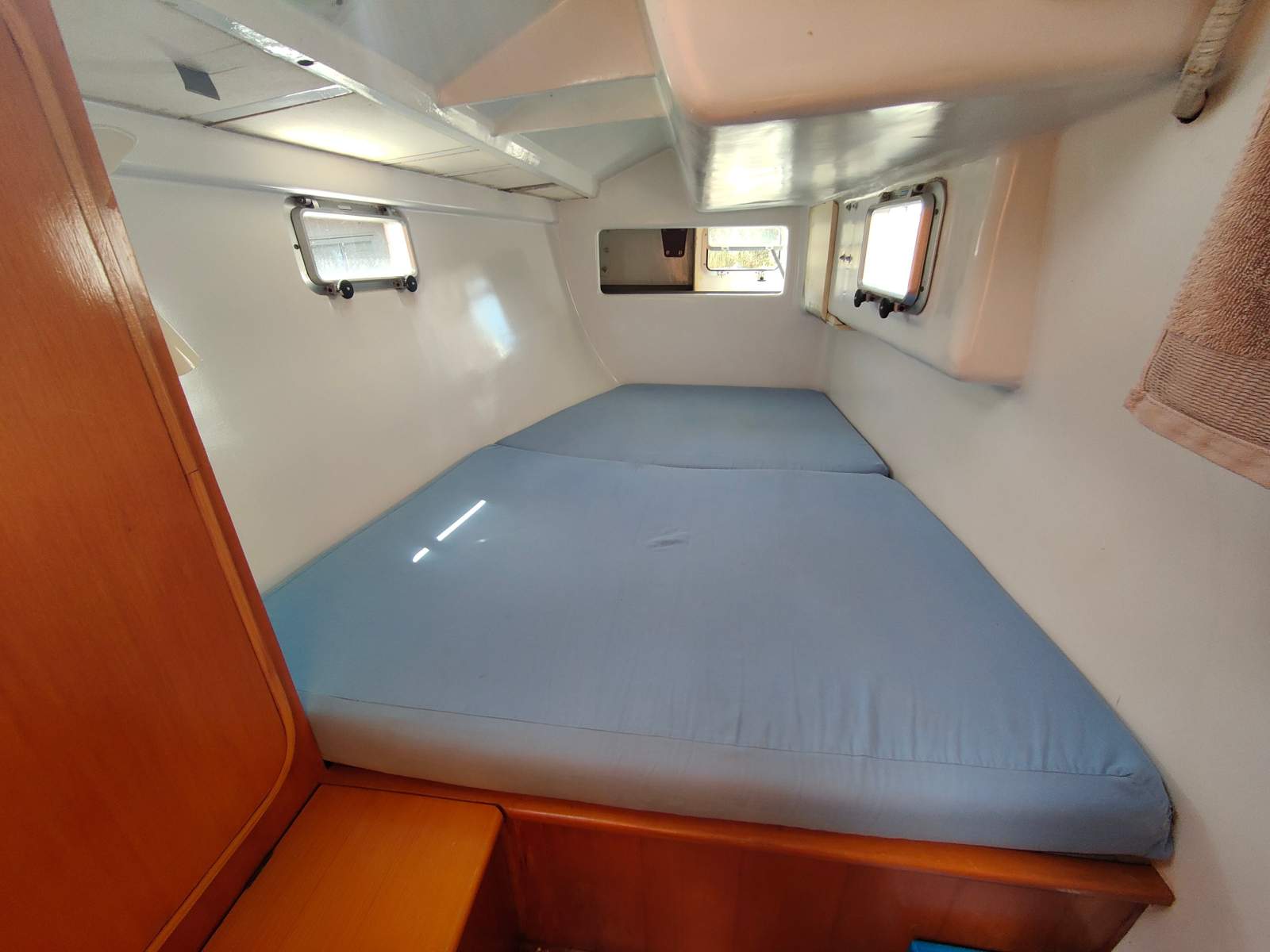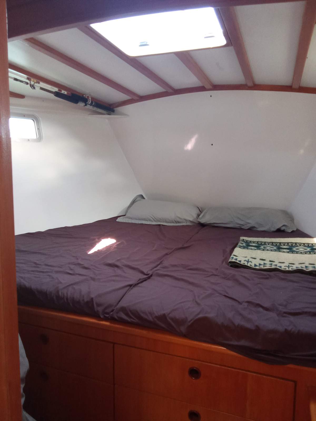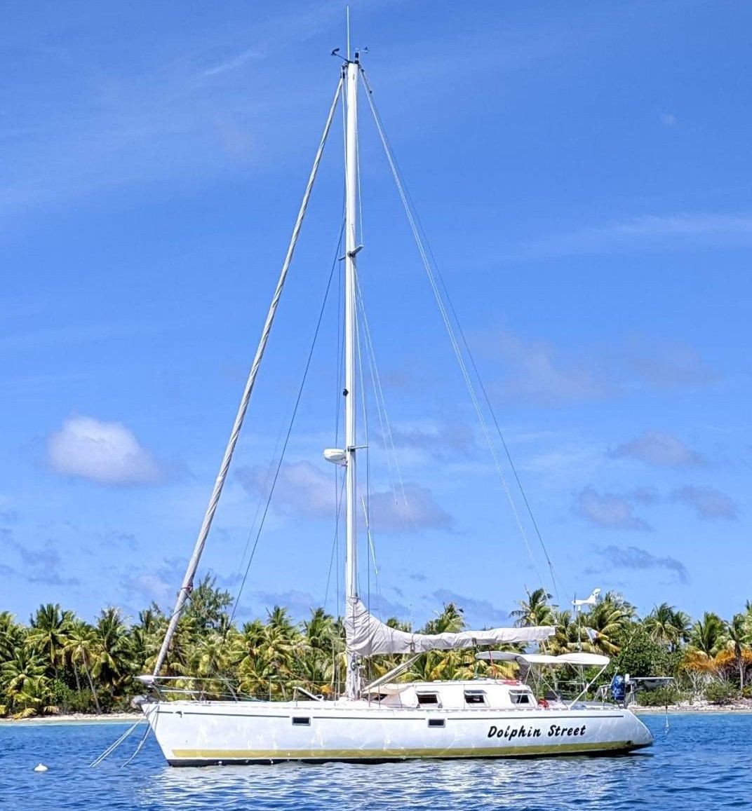 Her strip plank construction with bi axial fibreglass and epoxy make for an excellent weight to stiffness ratio. She is exceptionally bright below with 8 x brand new hatch windows fitted in 2022, offering great cross ventilation in tropical locations. She has excellent head room at 1.93m and a shallow draft of 1.35m providing access to places you wouldn’t normally get to with other keel boats. Simplicity, reliability and solidly constructed ‘Dolphin Street’ is very seaworthy boat and ready for her next adventure.