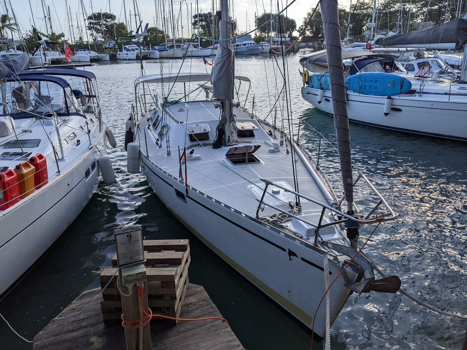 - Northsails Main GV fully batten with 3 reefs 34 m2 (new 2025), Genoa 47 m2 on Profurl C420 (new 2022), Staysail on removable forestay, storm Jib and spinnaker with sock (older).