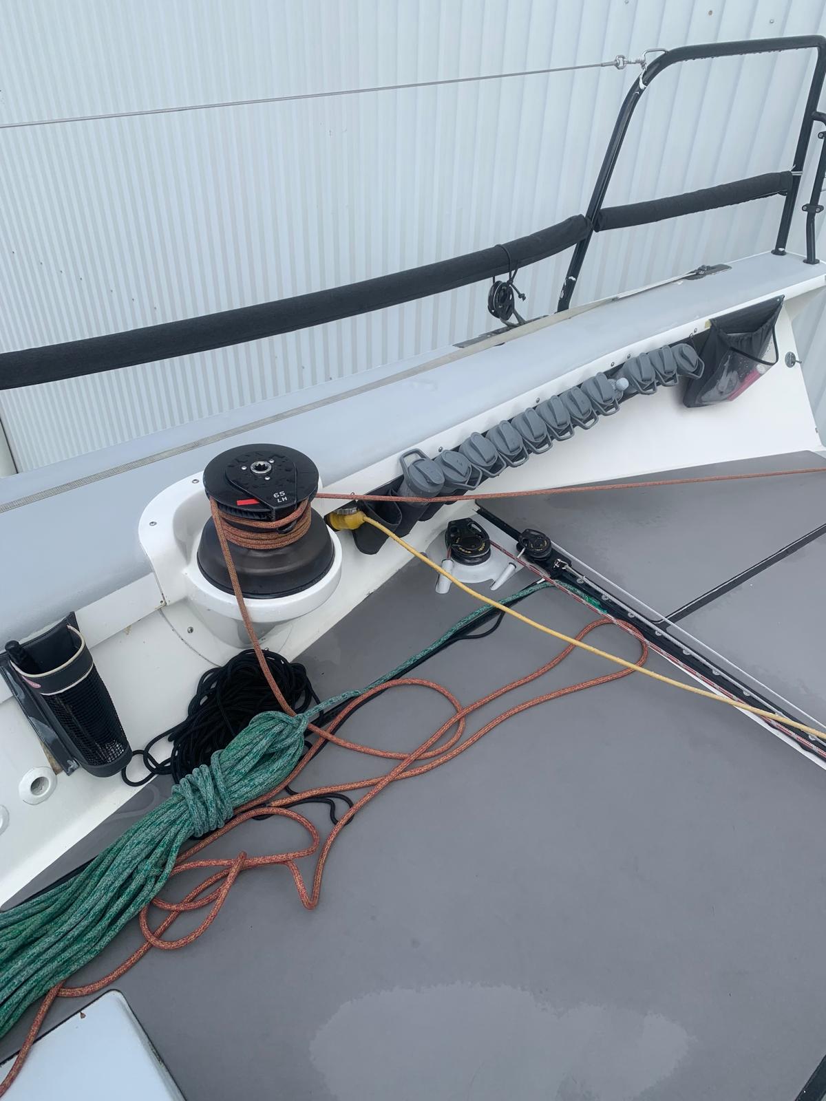 - Winch Package is full Harken TP52 Spec with recently upgrades larger Topmast. Winches: 4 x 65.3 Primaries, 2 x 65.3 runner winches, 52 halyard winch. 2 x Harken Pedestals 1:1 direct drive and overdrive. Carbon Stanchions, Numerous line handling bags in cockpit.