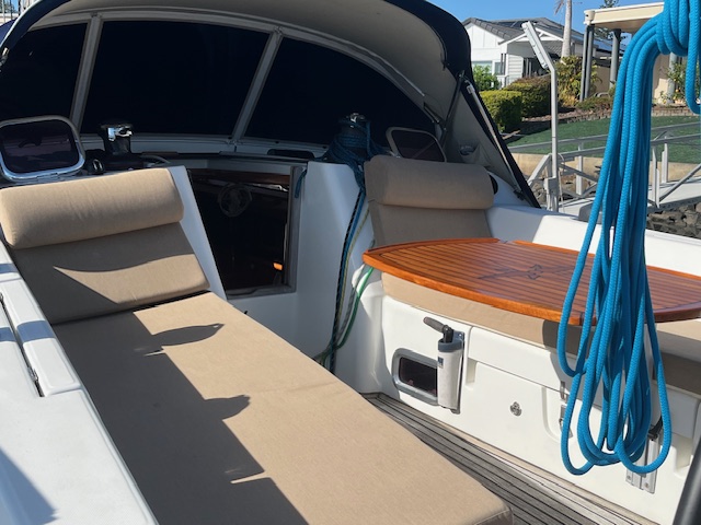 - Composite coring and ISO gelcoat surface. The cabin top, cockpit floor and seat tops are laid teak.