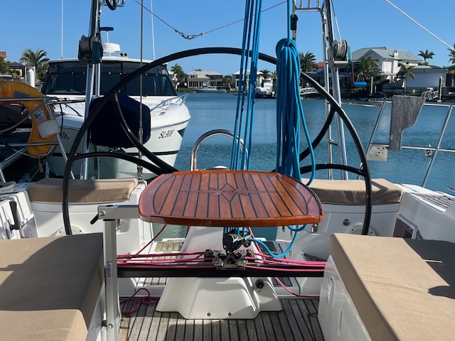 - The vessel is rigged as a fractional sloop. The Sparcraft anodised aluminium mast is fitted with three sets of slightly swept spreaders and rigged with cap shrouds, dis-continuous D1, D21, and D3 diagonal shrouds, aft lower shrouds forestay and a bridled backstay. The forestay is fitted with a Profurl R420 Genoa furling system. All standing rigging is 1 x 19 stainless steel wire and sheaves new 2025. The backstay is fitted with a Navtec hydraulic ram. A Seldon brand self-tacking jib track is fitted. All deck gear is good quality Harken brand including the winches. The vessel has an electric halyard winch.