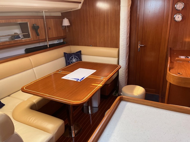 - Fwd berth, stbd qrt berth, port qrt berth. Large spacious saloon with folding saloon table and two stools. Provided: Alternate smaller saloon/cockpit table, portable.